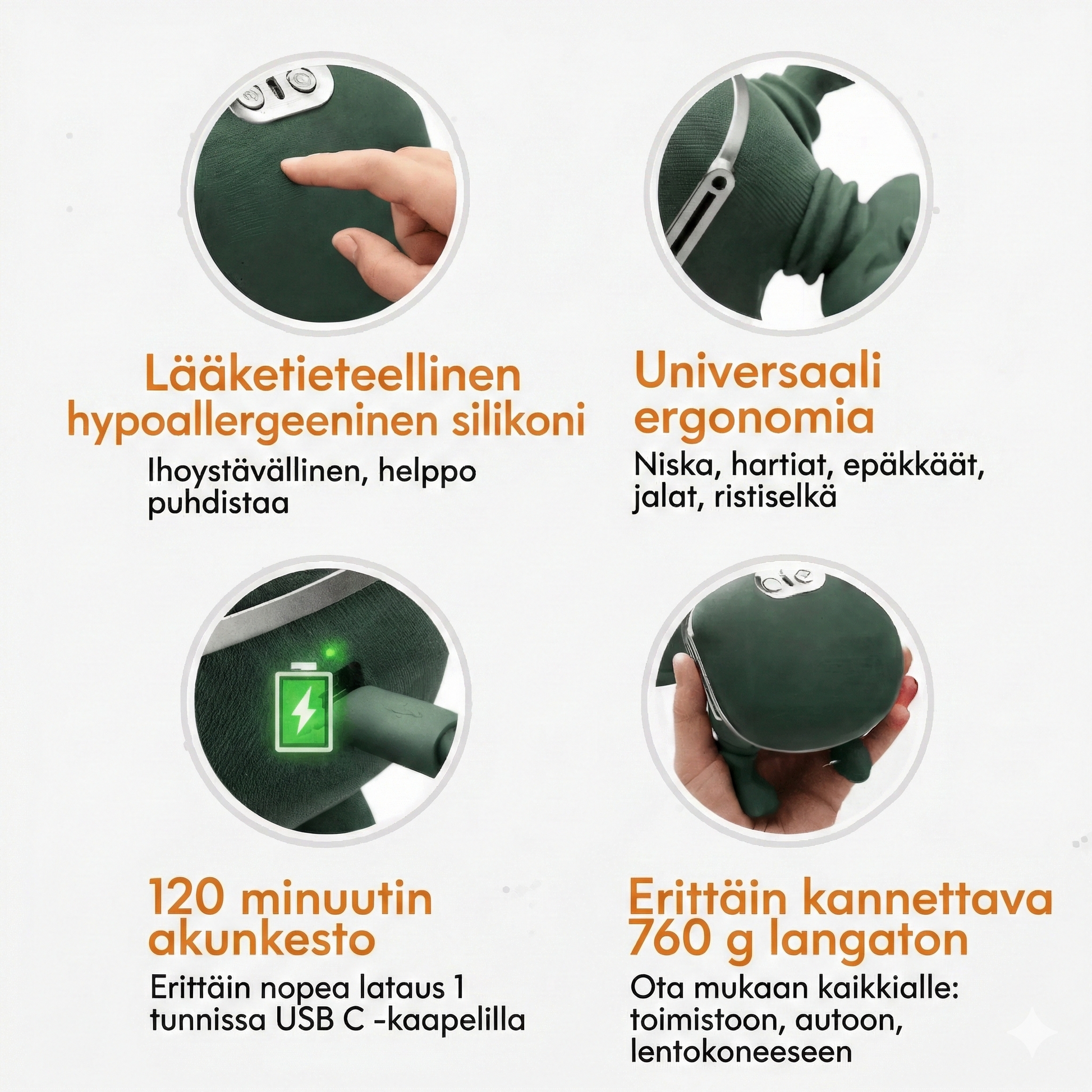 Tulokset perustuvat asiakaskyselyyn ja käyttäjäkokemuksiin. Yksilölliset tulokset voivat vaihdella. Tuote ei ole lääkinnällinen laite eikä korvaa ammattilaisen hoitoa.